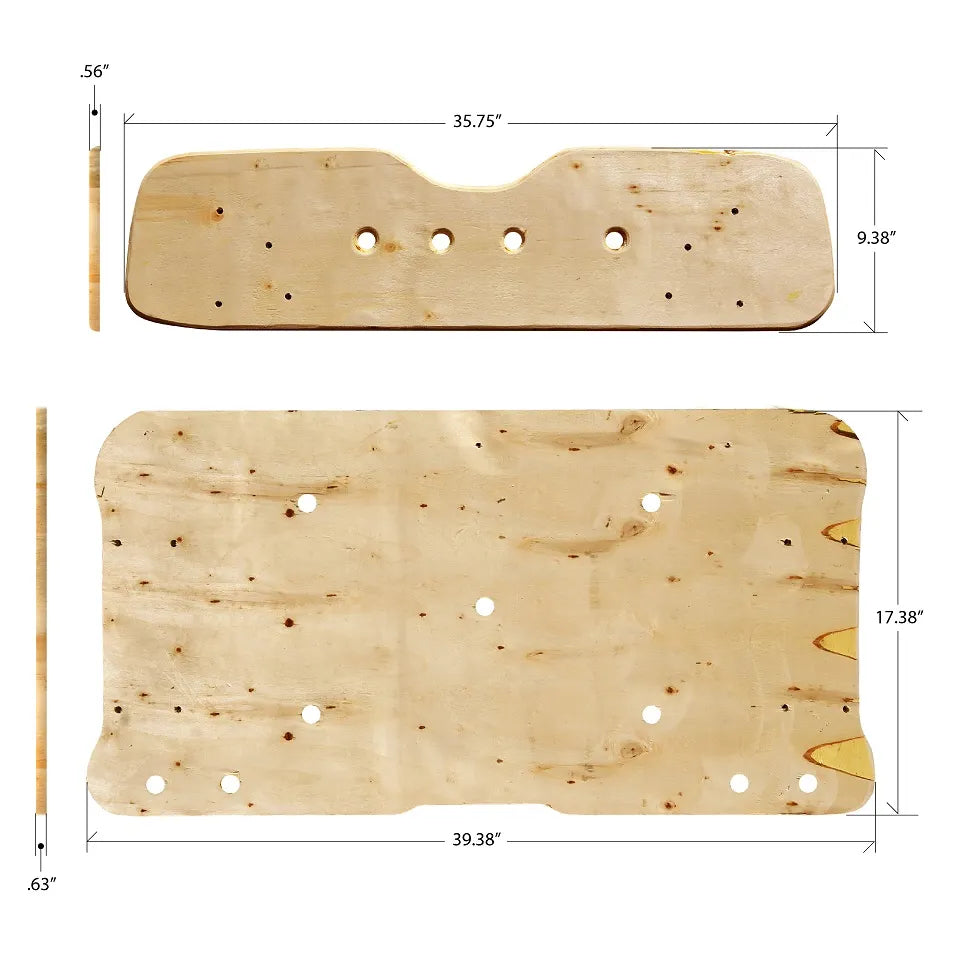 This is a replacement seat and Backrest board for the E-Z-GO RXV Golf Cart. It is made specifically for that model golf cart. Made with 5/8" Plywood. It will also come with 14 T-Nuts, 14 bolts and 14 washers. Hinges not included.
