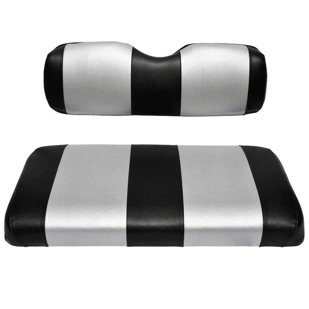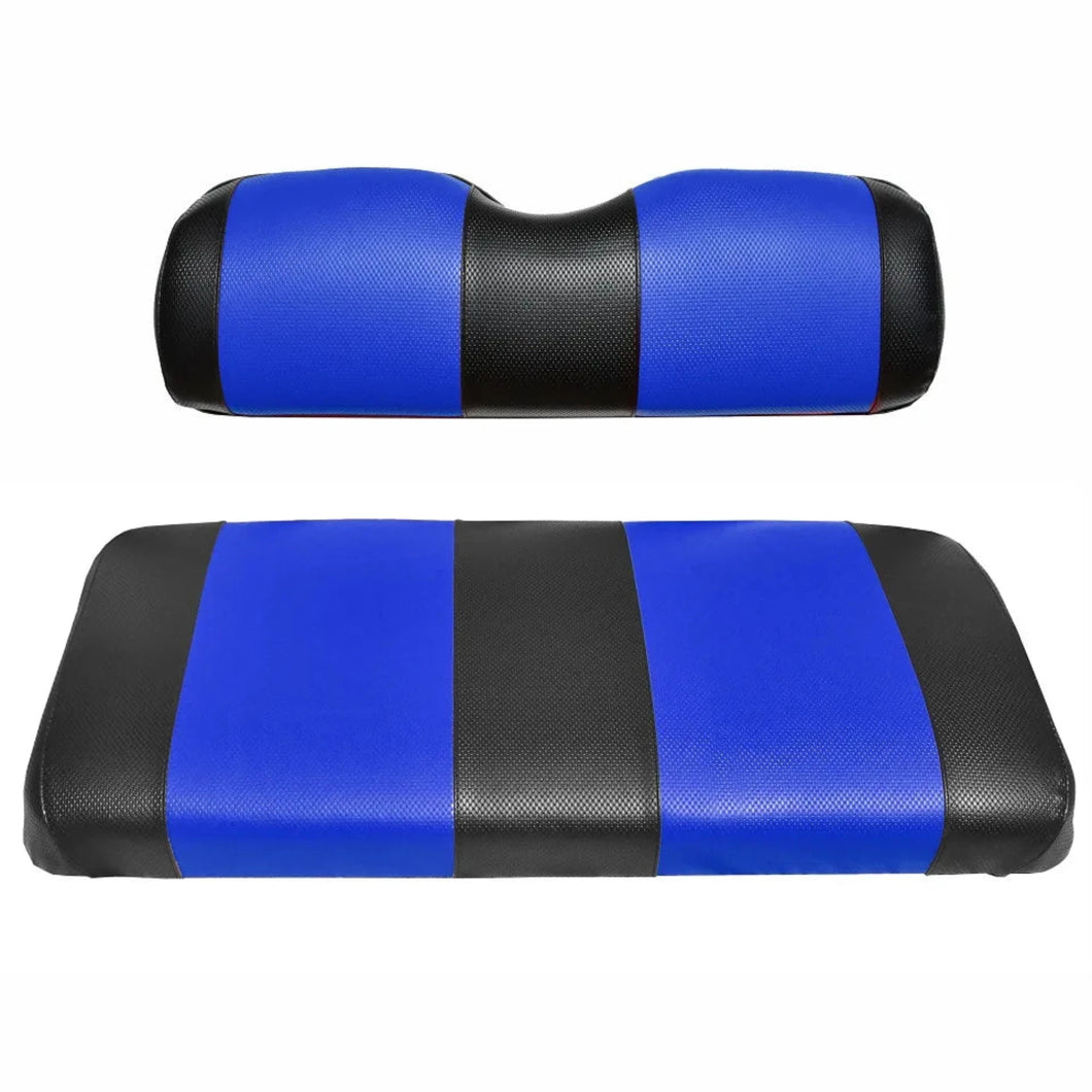 Are your golf cart seats looking worn and torn? Upgrade your old seat covers and give your golf cart a fresh look! This easy-to-install seat cover replacement fits your cart's rear bench seat, stapling over the existing cushions. Our seat cover replacements feature marine vinyl with UV inhibitors to protect against fading, moisture damage, and cracking from the cold with high-quality 5-panel stitching to ensure long-lasting durability. User-Friendly Self Installation Unlike other replacement fabrics, our universal fit seat covers are pre-formed, ready to use out of the package, and a breeze to install. To replace, remove your old seat covers. Fit the new marine vinyl cover over your existing seat cushions and staple the cover in place. Enduring Quality Whether you're heading out to the green or storing your golf cart until your next game or season, our durable golf cart seat covers will hold up to the sun and elements year-round. Get only the best golf cart accessories with GOLF BALL DIVERS! Features & Benefits Golf Cart Seat Cover Replacement Ultra-Durable Constructed With Marine Vinyl Weatherproof UV and Water-Resistant 5-Panel Stitching Universal Fits Rear Bench Seat, All Model Years Easy Installation Includes One 2 pc Replacement Seat Cover With Directions Available in Two-Tone and Solid Color Variations New Cover Staples Over Existing Seat Cushions Premium Golf Cart Accessory