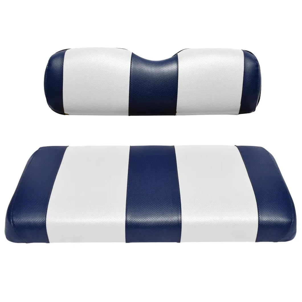 GOLF CART SEAT COVERS: Upgrade your old seat covers and give your golf cart a fresh look! This easy-to-install seat cover replacement for all rear flip golf cart models fits your cart's rear bench seat, stapling over the existing cushions. Our seat cover replacements use marine vinyl and high-quality 5-panel stitching for long-lasting durability.